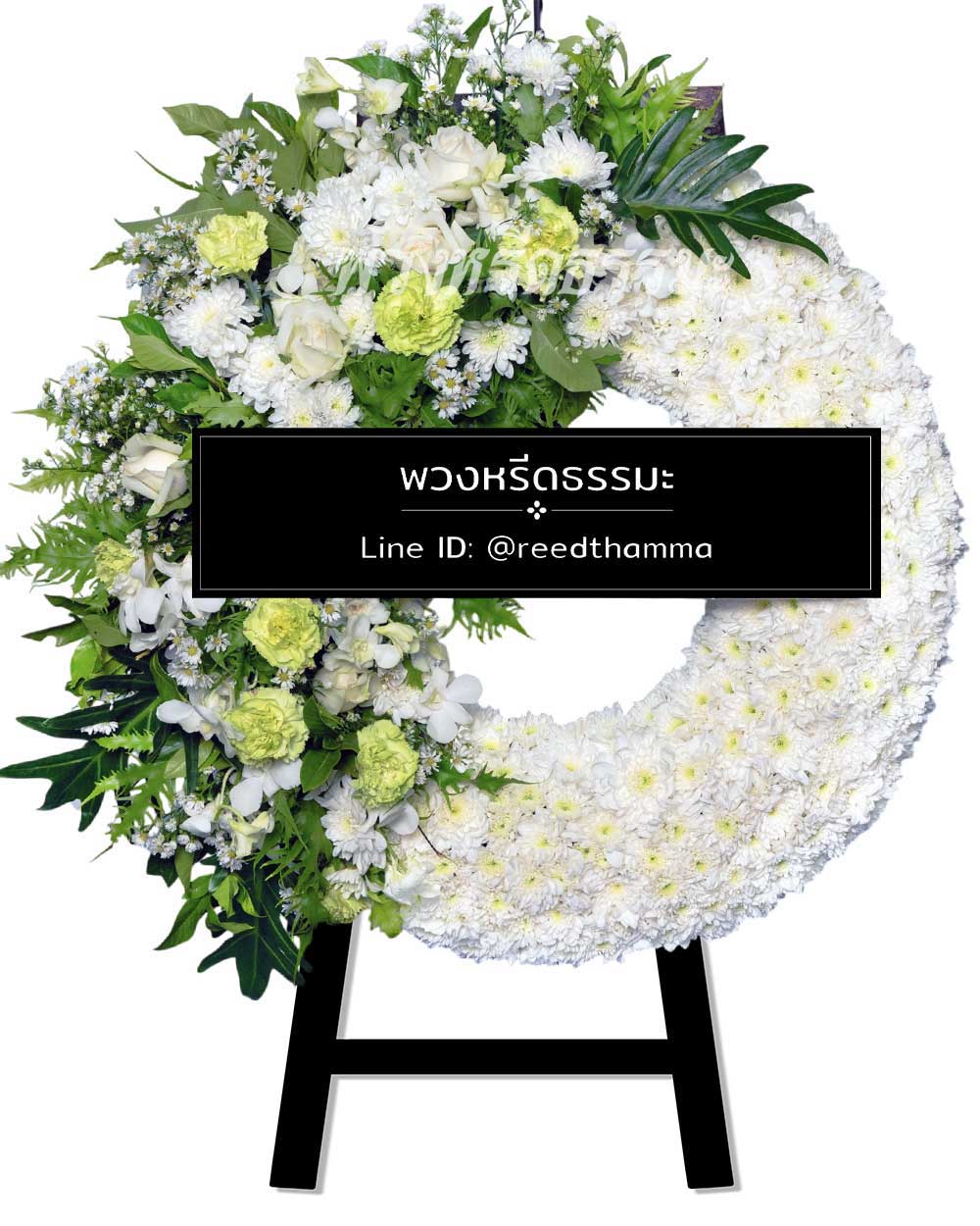 - ดอกไม้ที่ใช้จัด พวงหรีด นั้นขึ้นอยู่กับฤดูกาลและปริมาณในตลาด หากดอกไม้ชนิดนั้น ๆ หมด ทางเราขออนุญาตใช้ดอกไม้พันธุ์อื่นในการจัด พวงหรีด โดยเราจะใช้ดอกไม้ที่มีโทนสีใกล้เคียงและสมราคาให้กับท่านมากที่สุด