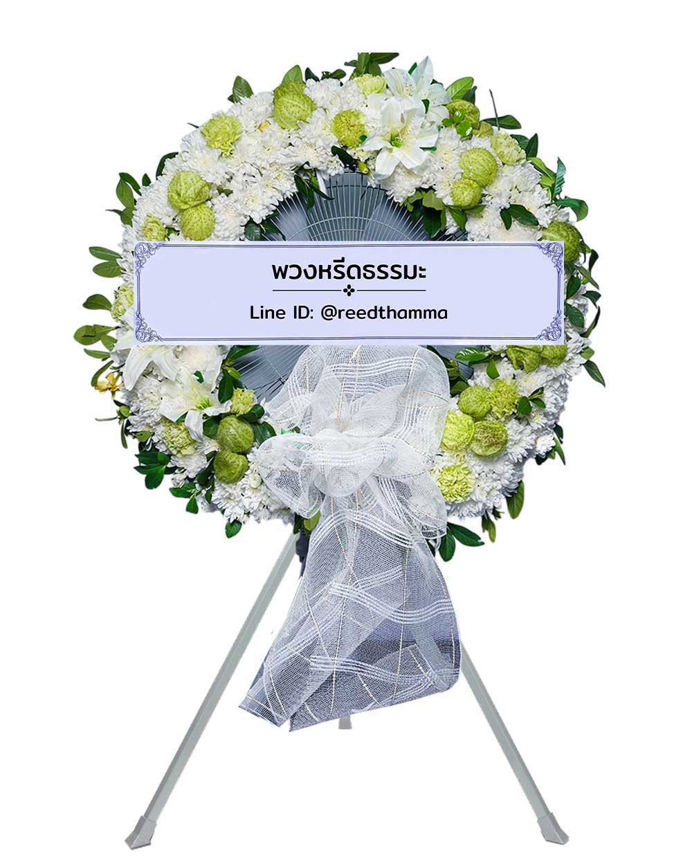 • ดอกไม้ที่ใช้จัดขึ้นอยู่กับฤดูกาลและปริมาณในตลาด หากดอกไม้ชนิดนั้นหมด เราขออนุญาตใช้ดอกไม้พันธุ์อื่นในการจัดพวงหรีดแทน โดยคำนึงถึงโทนสีและราคาที่ใกล้เคียงมากที่สุด
