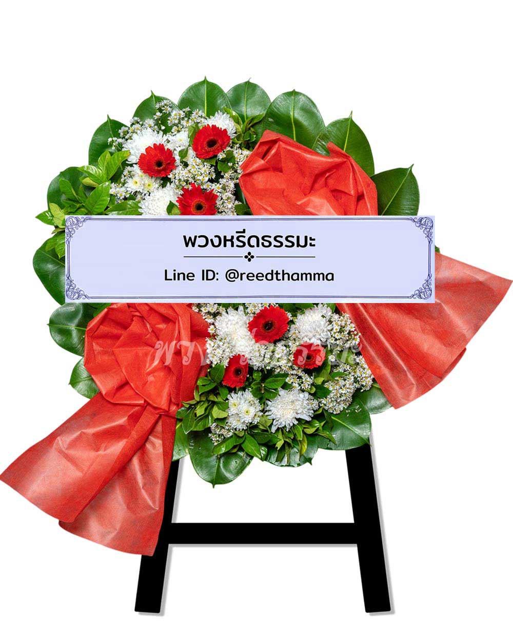 พวงหรีดดอกไม้สดสีแดง-ขาว แสดงความอาลัยอย่างสง่างาม ด้วยการจัดดอกไม้อย่างประณีตบรรจง ผสมผสานความอ่อนโยนและความเข้มแข็งไว้อย่างลงตัว เหมาะสำหรับการส่งเพื่อแสดงความเคารพและไว้อาลัยต่อผู้ล่วงลับ