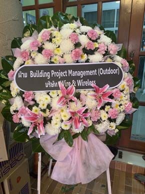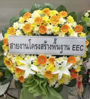 ร้านพวงหรีดวัดสามกระบือเผือก นครปฐม พวงหรีดจากสายงานโครงสร้างพื้นฐาน Eec
