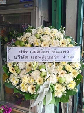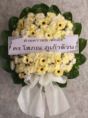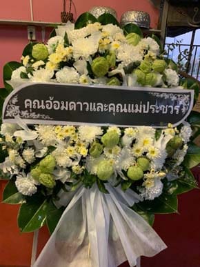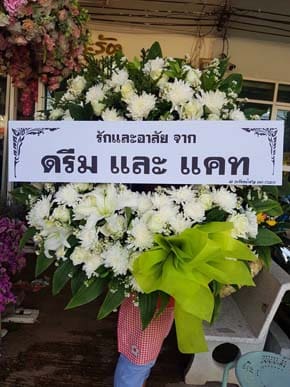 ร้านพวงหรีดวัดส่งบ้าน ปทุมธานี พวงหรีดจากเด็นทาเนียร์