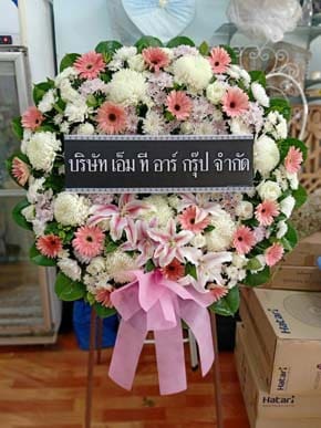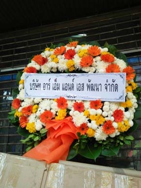 ร้านพวงหรีดวัดหมู่บ้าน ปทุมธานี พวงหรีดจาก อาร์ เอ็ม แอนด์ เอส พัฒนา