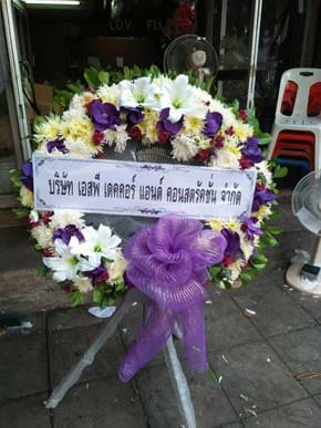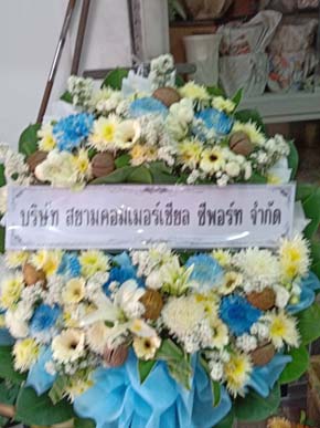 ร้านพวงหรีดวัดจักร์สีห์ สิงห์บุรี พวงหรีดจาก สายไฟฟ้าบางกอกเคเบิ้ล