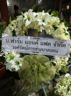 ร้านพวงหรีดวัดบางปรงธรรมโชติการาม ฉะเชิงเทรา พวงหรีดจากพนักงานธุรกิจสุกร