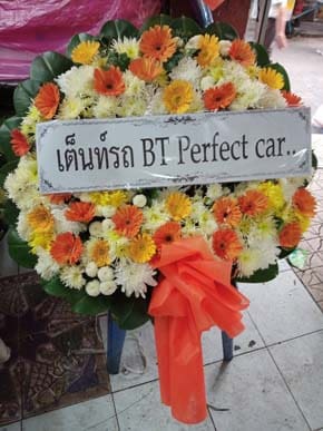 ร้านพวงหรีดวัดศรีประวัติ นนทบุรี พวงหรีดจากเต็นท์รถ Bt Perfect Car