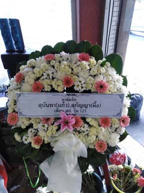 ร้านพวงหรีดวัดออเงิน ปทุมธานี พวงหรีดจากสมบัติ แหม่ม เหมย